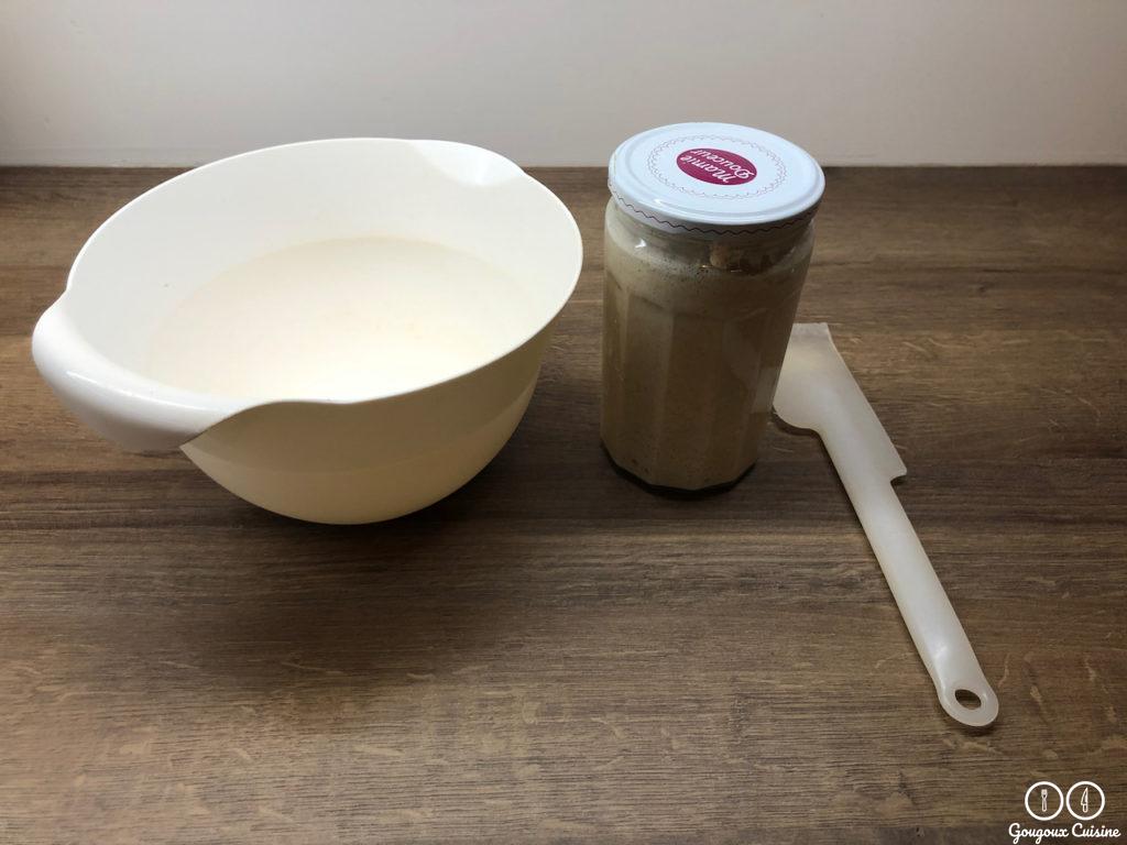 Jeudi, 20h : sortir le levain du frigo 1h pour qu'il prenne la température ambiante avant de le rafraichir.