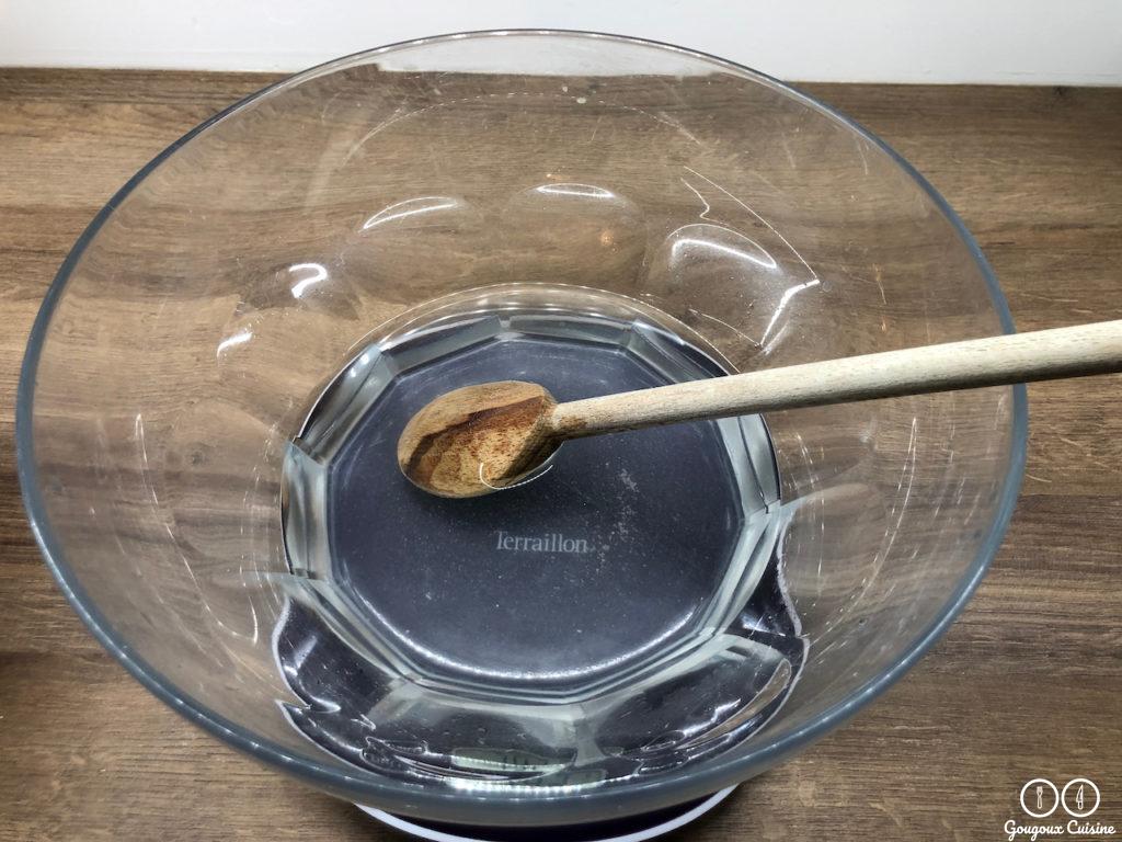 Mélanger à l'aide d'une cuillère en bois jusqu'à ce que le sel disparaisse.