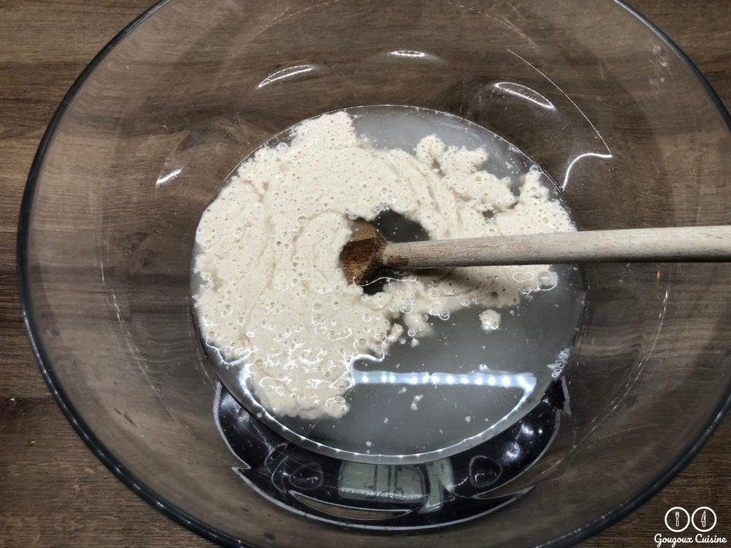 Vendredi, 7h : rafraichir le levain avec 75g d'eau et 75g de farine T80.