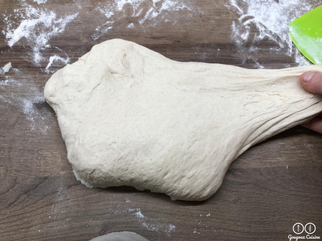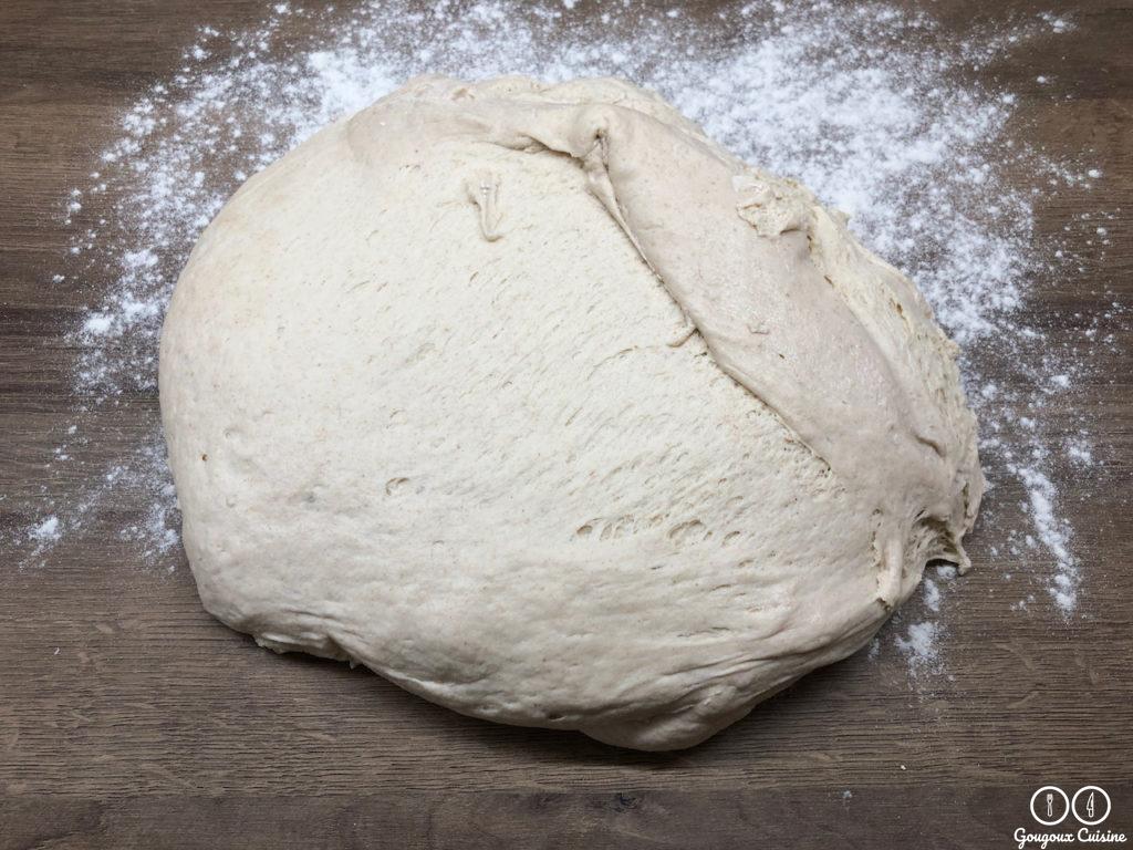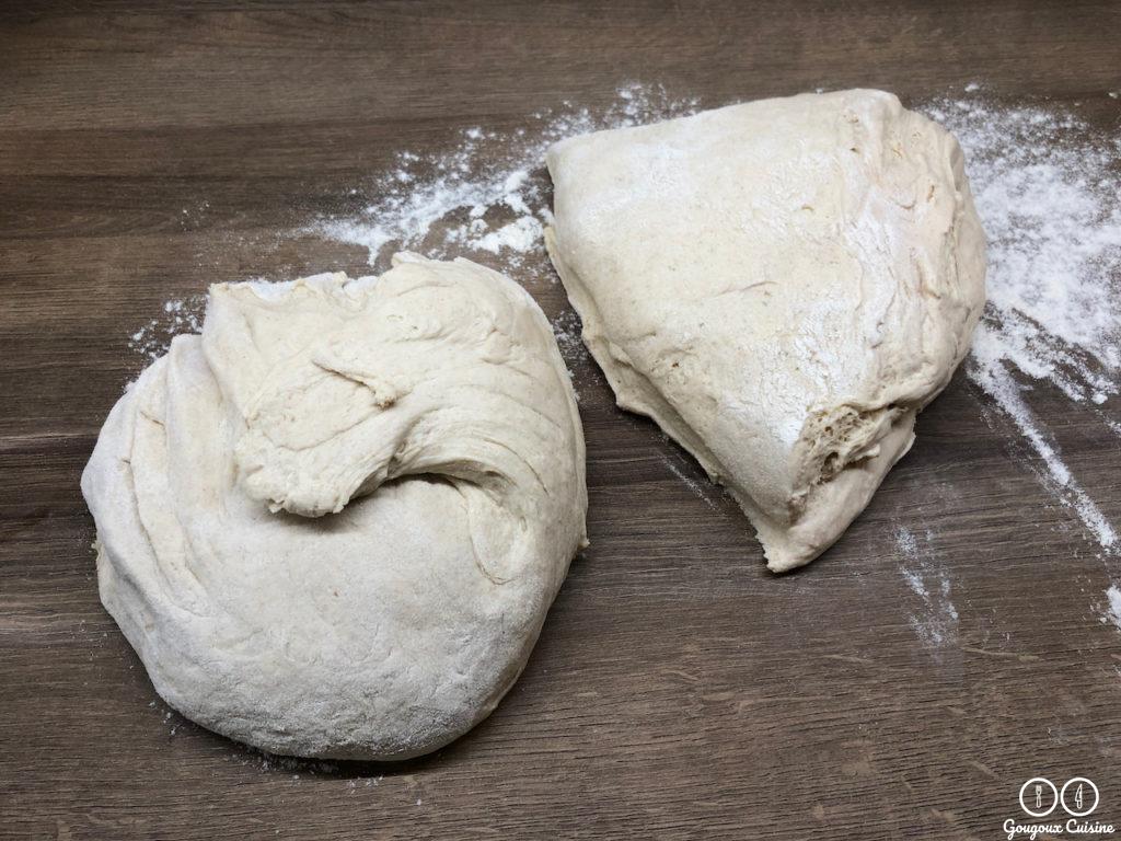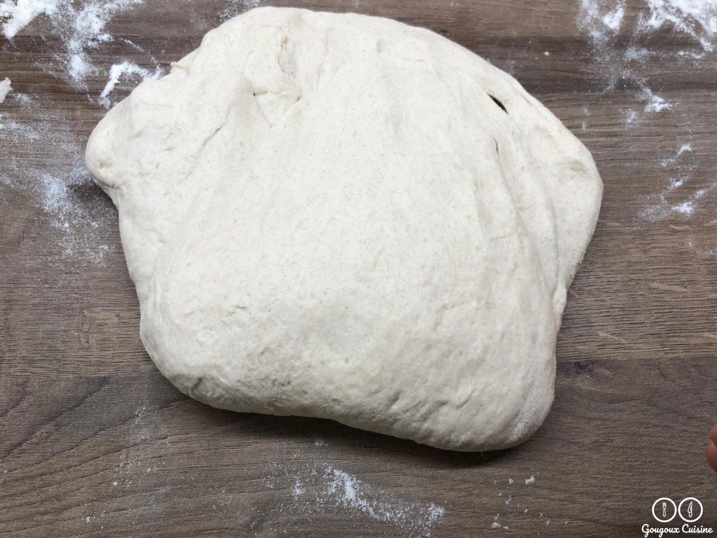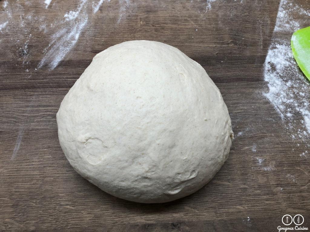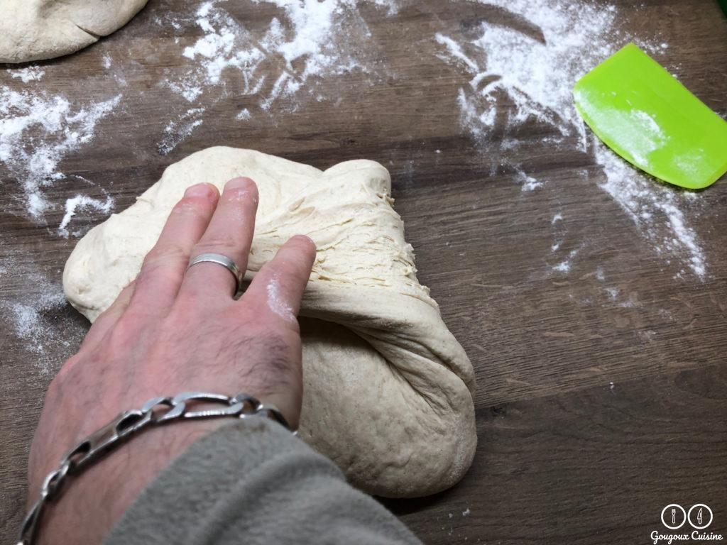 Faire ça une dizaine de fois. Puis bouler la pâte (on met ses mains de chaque côté du pâton et on fait des mouvements d'avant en arrière pour que la pâte roule et se mette en boule).