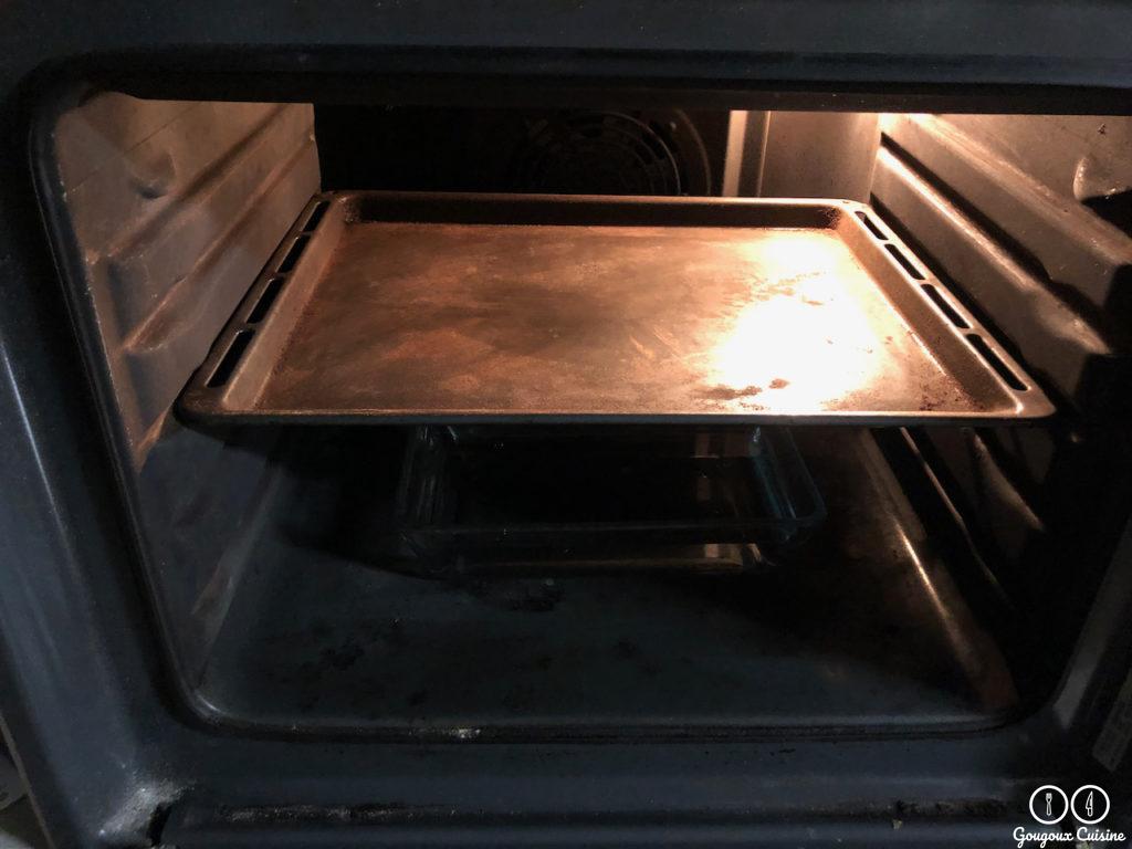 Samedi, 10h : Mettre le four en chauffe à 225°C chaleur tournante. Mettre le lèche frite à mi hauteur. Remplir un plat d'eau (1,5l environ) et déposer au fond du four. Cela va créer la buée nécessaire au croutage du pain.
