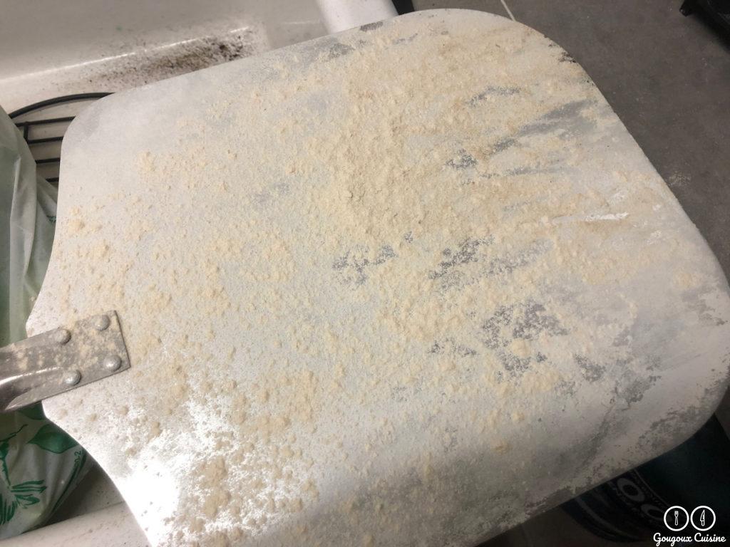 L'idéal pour cette recette est d'avoir une pelle (en alu ici pour moi). Fariner la pelle.