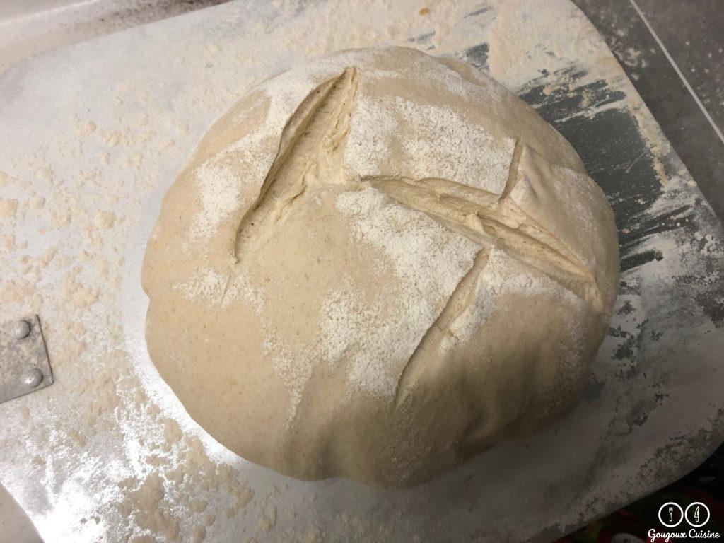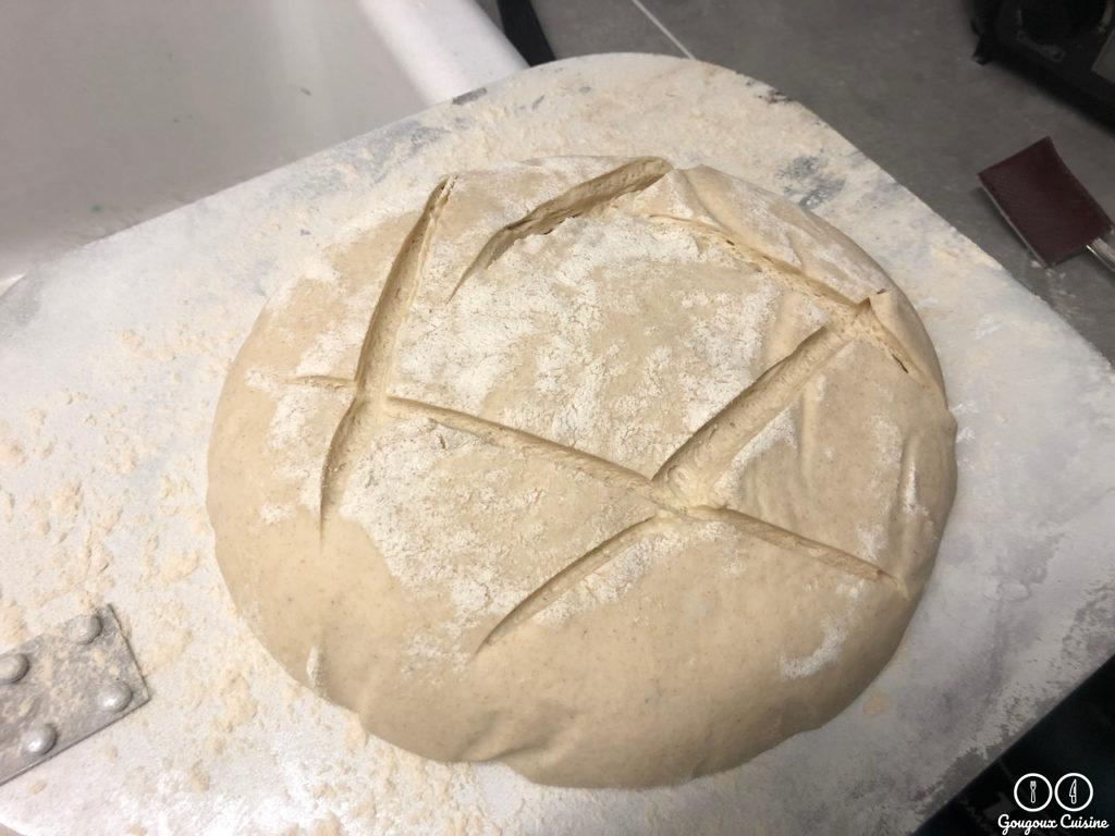 Grigner le pain avec une lame de rasoir ou un couteau très aiguisé. Faire de belles entailles (ne pas hésiter).