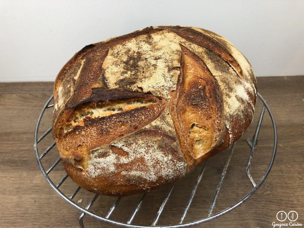 Une fois cuit, sortir le pain et le laisser refroidir sur une grille à hauteur.