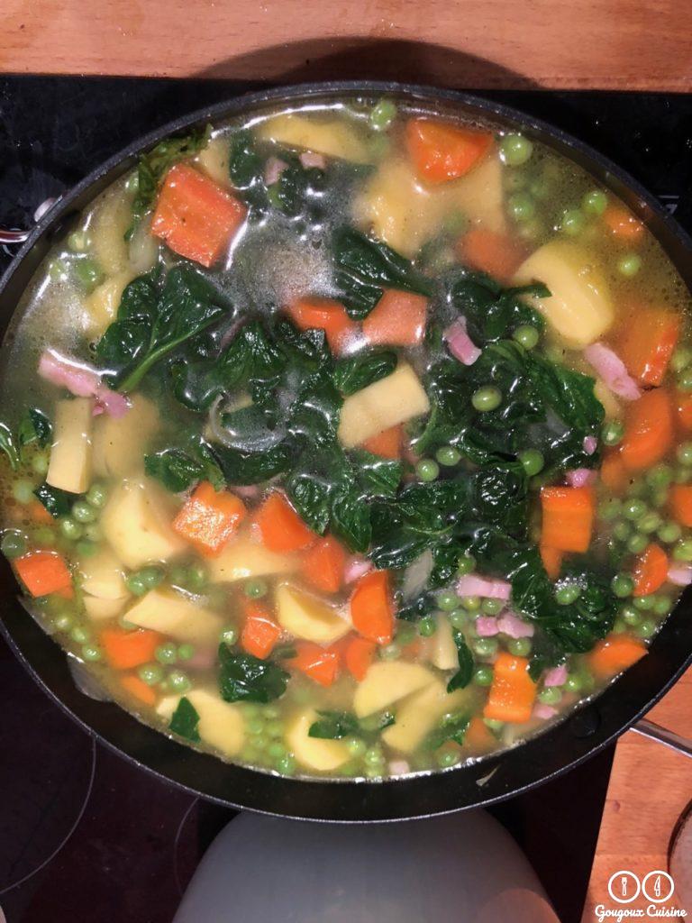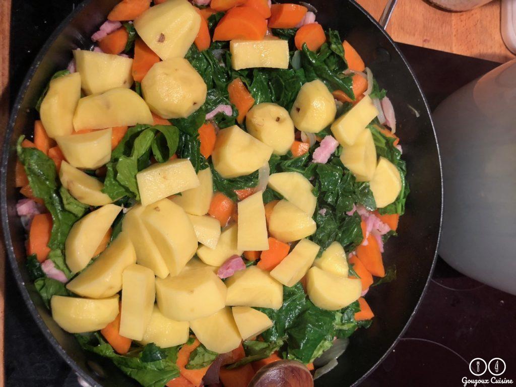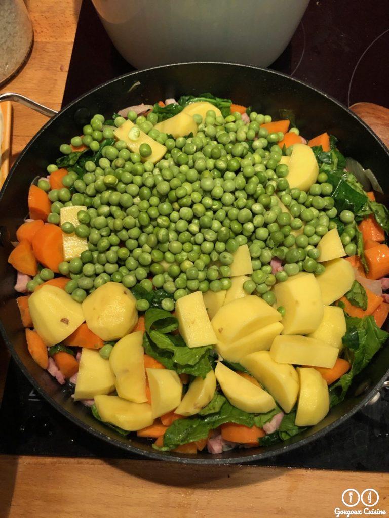 Ajouter le bouillon et faire mijoter 1h à 1h30.