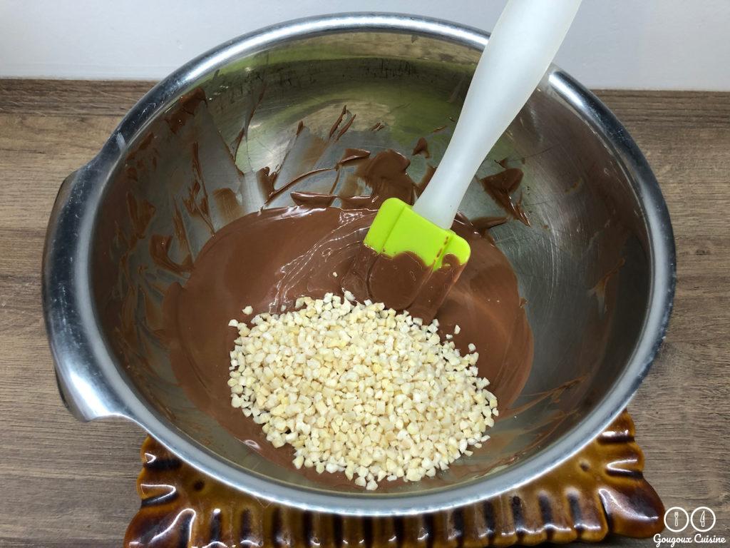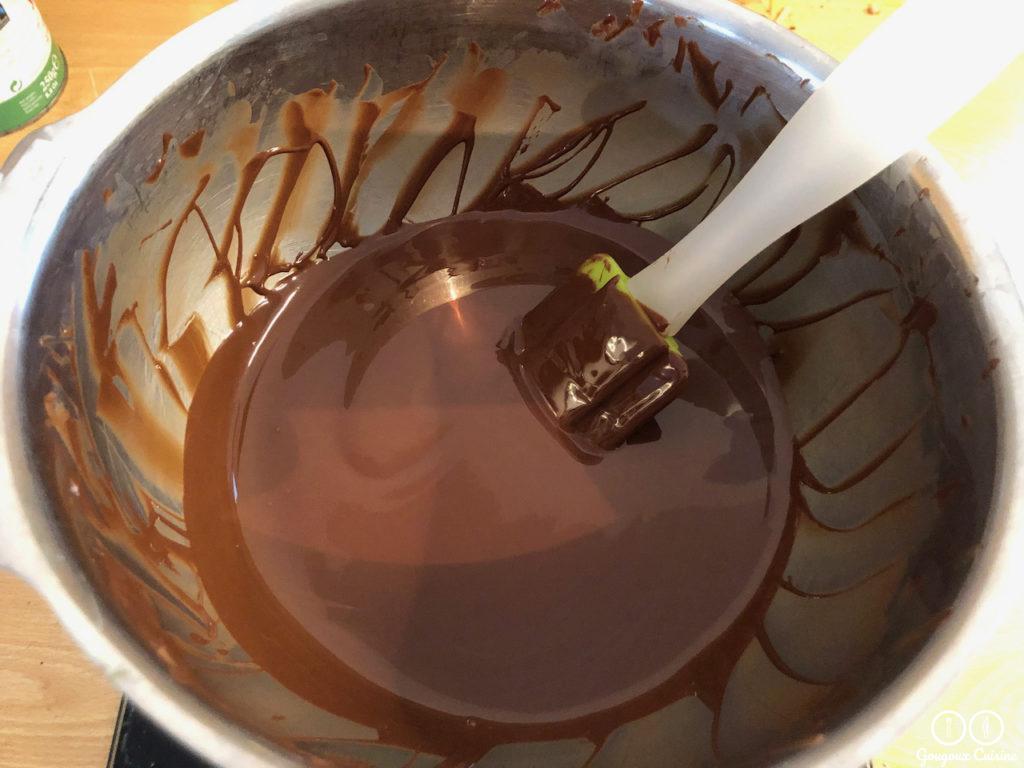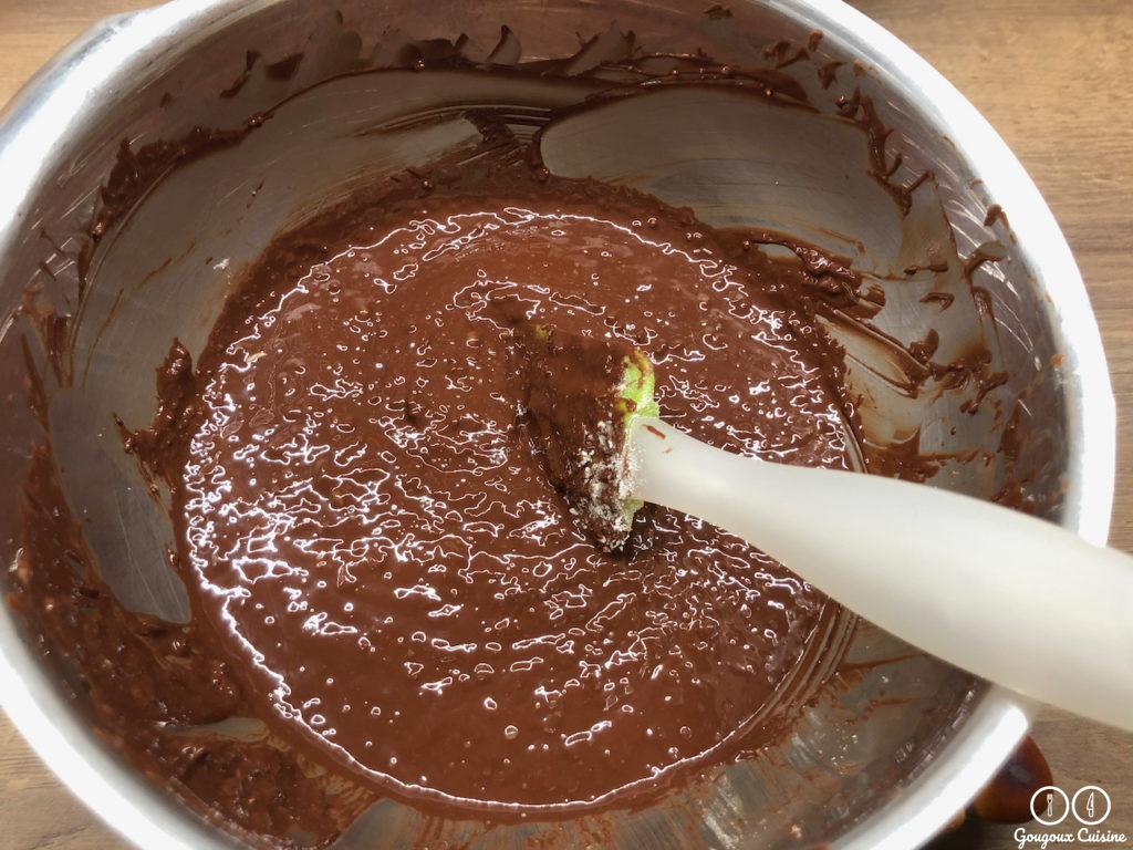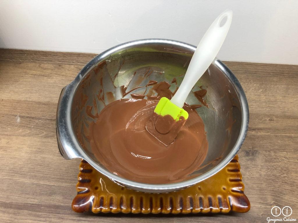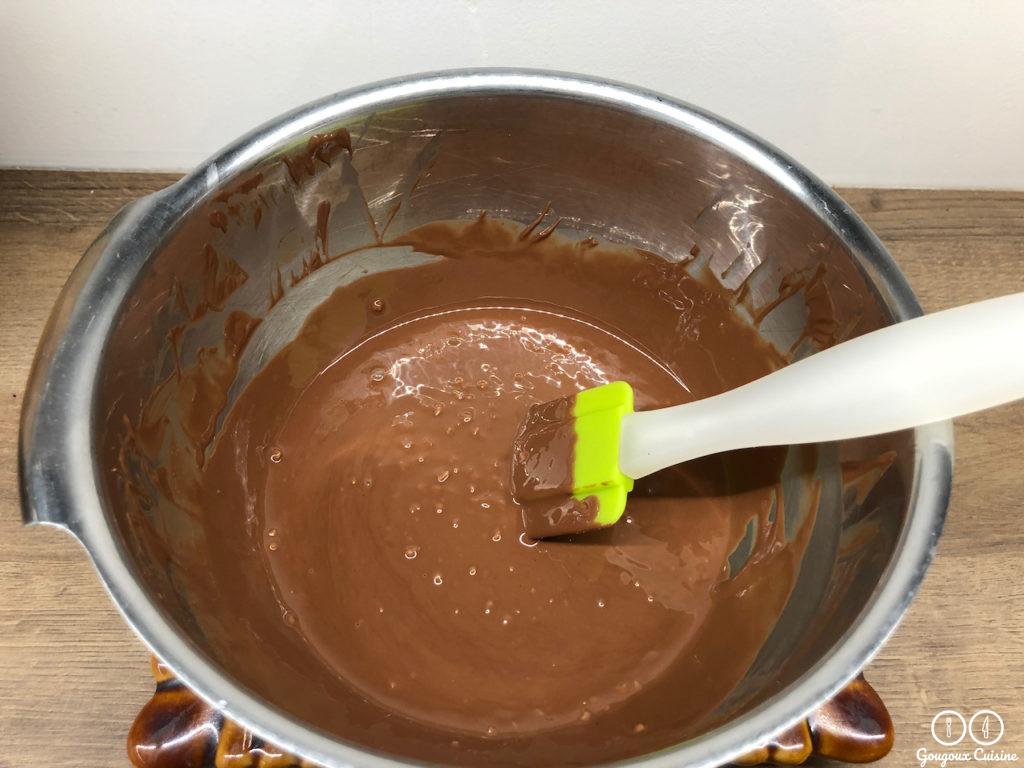 Ajouter l'huile et bien mélanger l'ensemble. L'huile va fluidifier le chocolat.