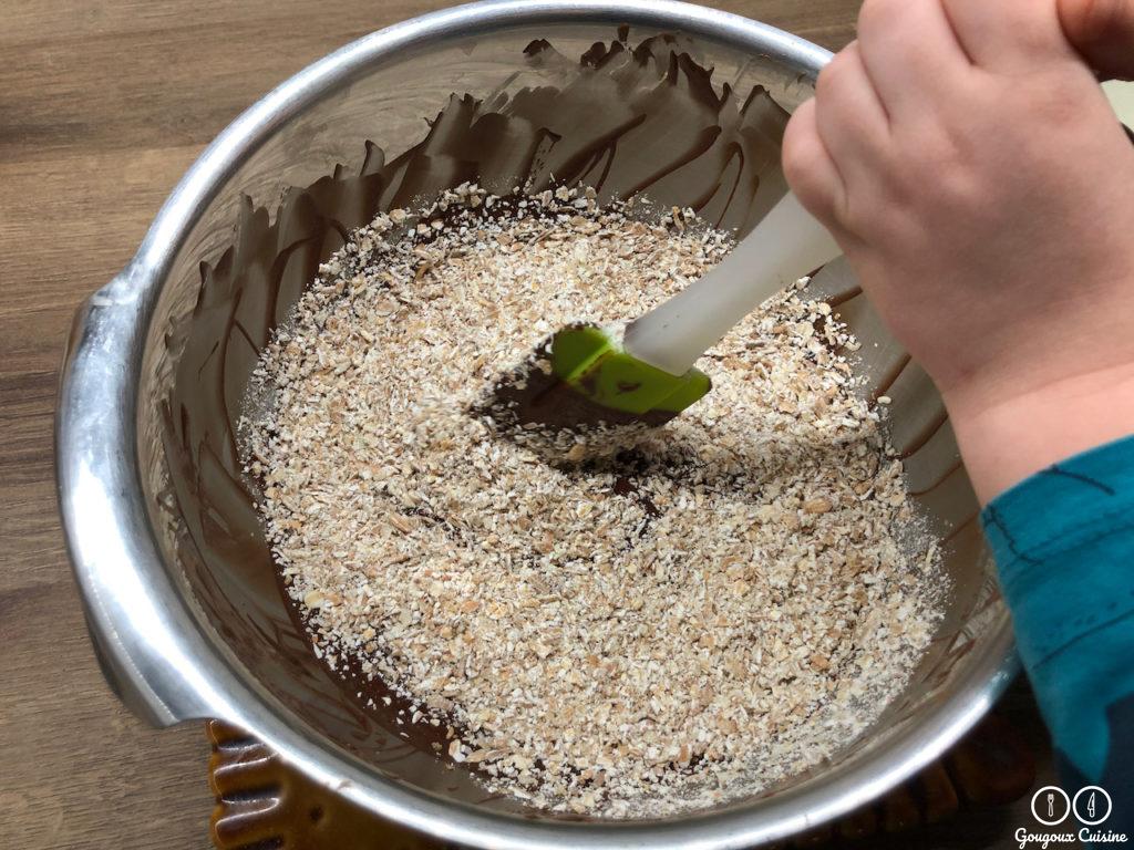 Ajouter les flocons d'avoine et remuer pour rendre le mélange homogène.