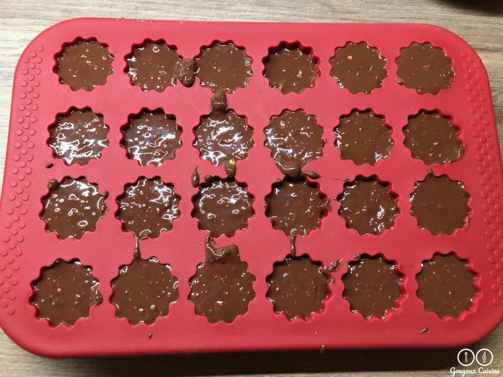 Une fois remplis, prendre la plaque et la tapoter très légèrement pour égaliser.