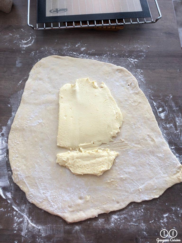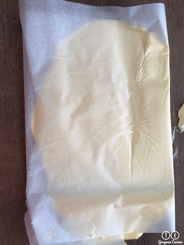 Le lendemain, ressortir la pâte sur un plan de travail fariné. Sortir la plaquette de beurre pour qu'elle soit à température ambiante.