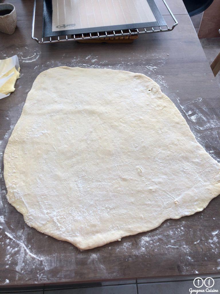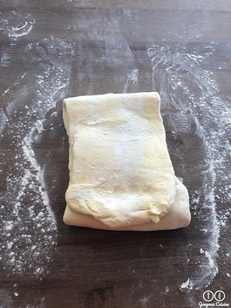 Tourner d'un quart de tour et recommencer. Cette opération est à faire au moins 4 fois pour obtenir un joli feuilletage. Si le beurre commence à être trop mou, mettre la pâte 15-20 min au frigo pour la retravailler.
