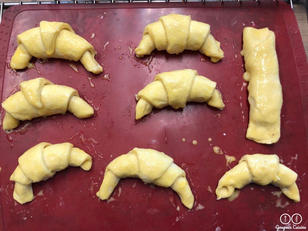 Le lendemain, préchauffer le four à 220°C. Pendant ce temps, battre un oeuf dans un bol et badigeonner les croissants avant d'enfourner.