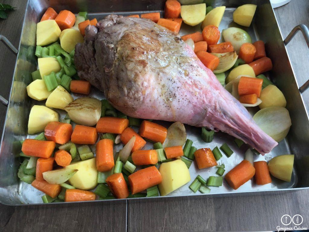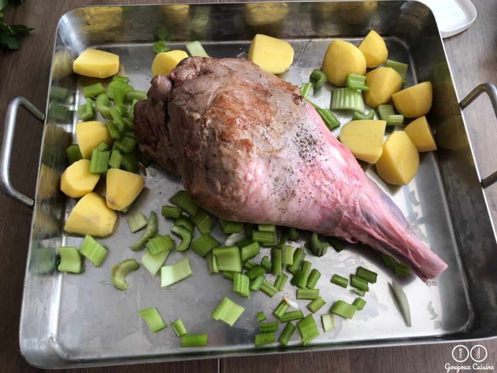 Mettre les pommes de terre et céleri avec le gigot.