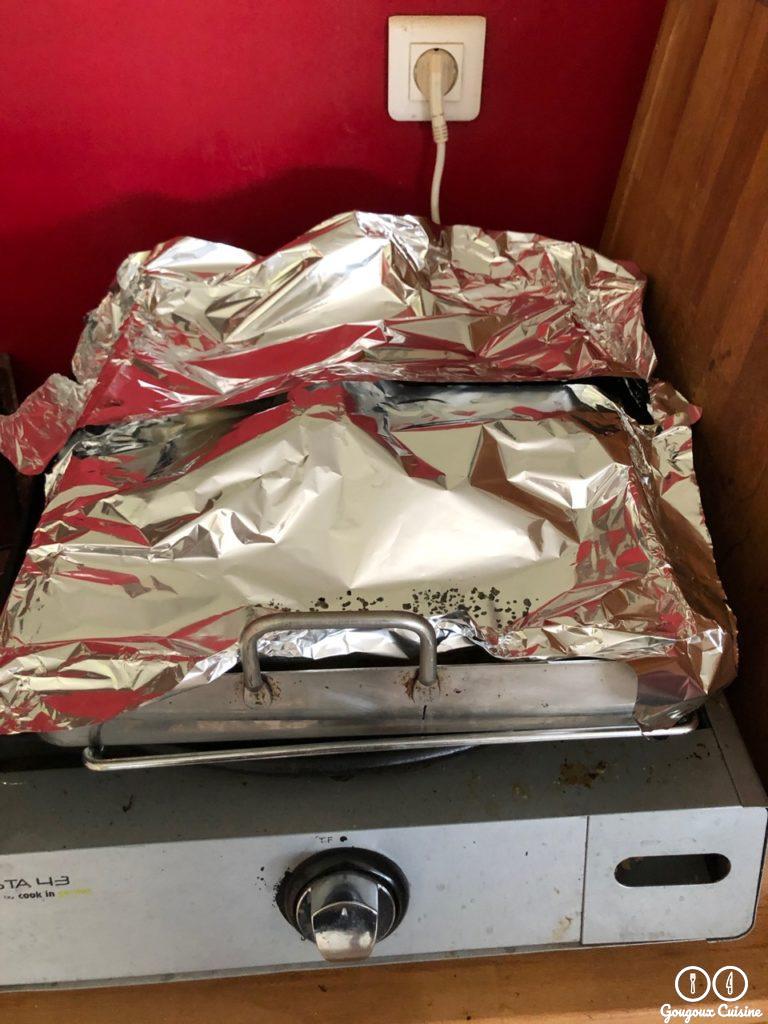 Au bout de 5h de cuisson, sortir le gigot et le couvrir de papier alu pour la nuit.