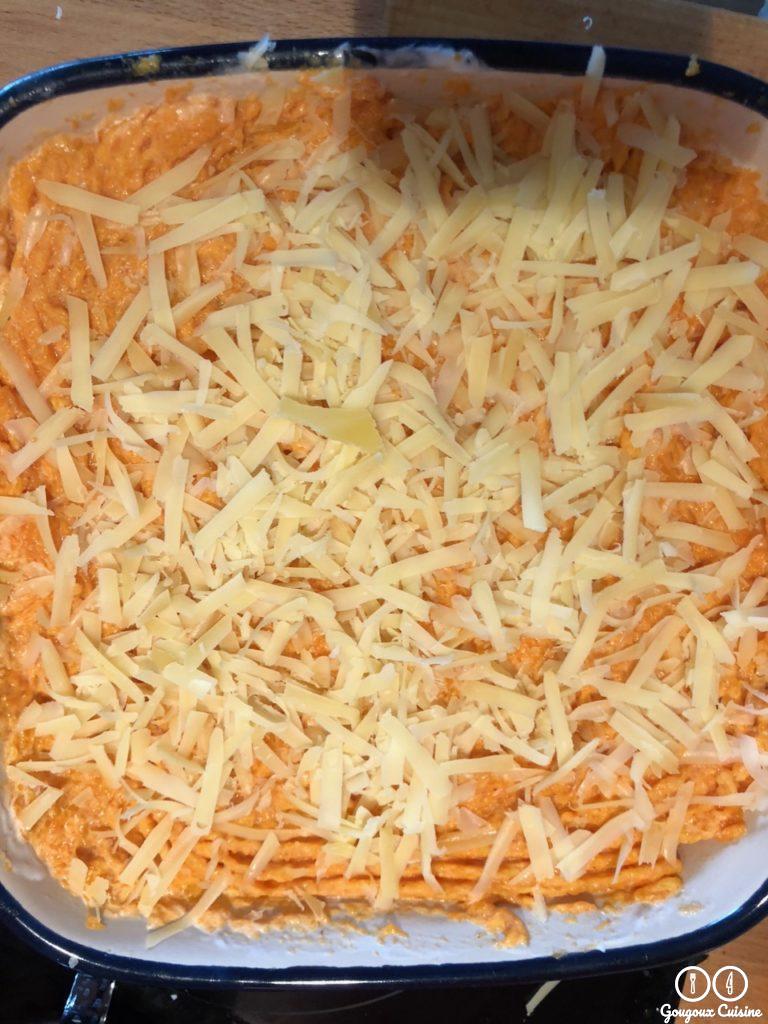 Râper le fromage au dessus du gratin et enfourner pendant 30 min à 200°C.