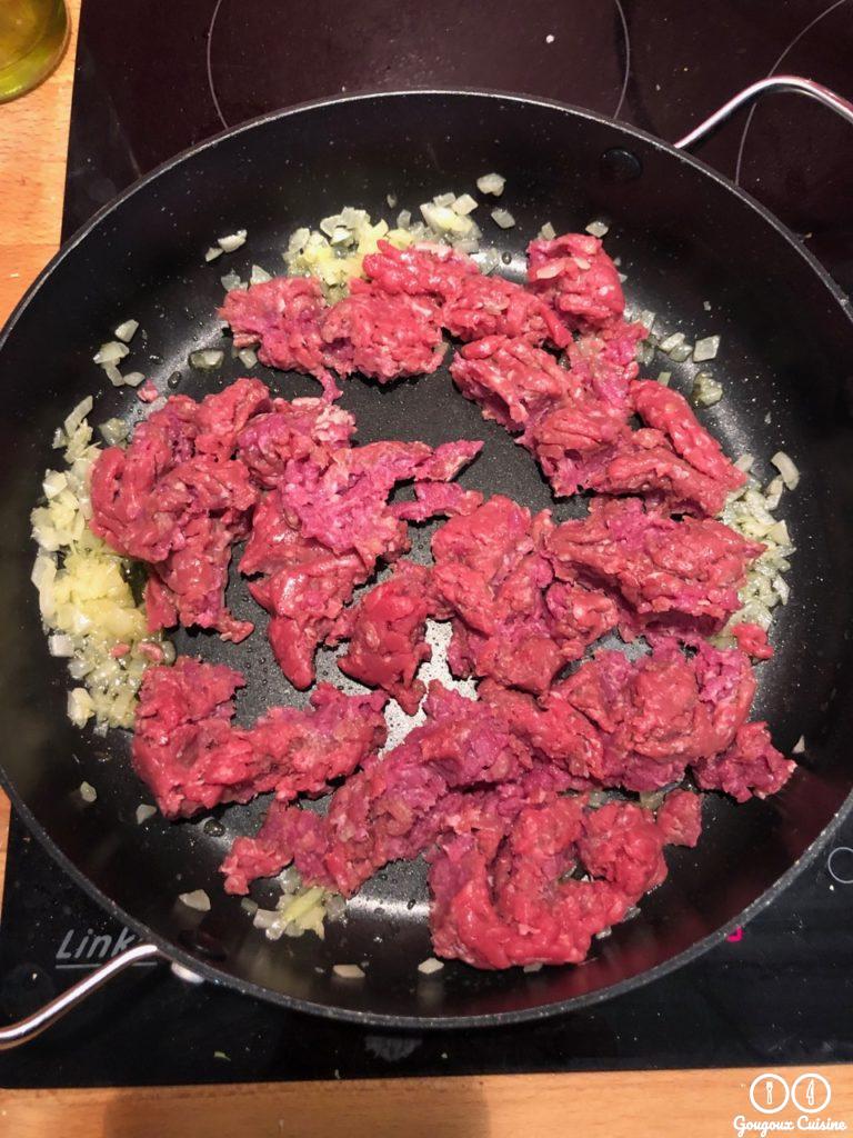 Ajouter la viande hachée et faire cuire à feu moyen.