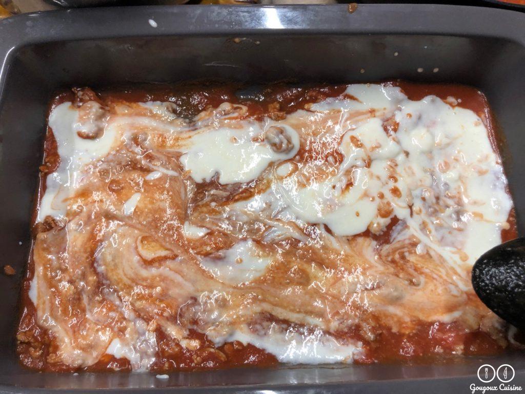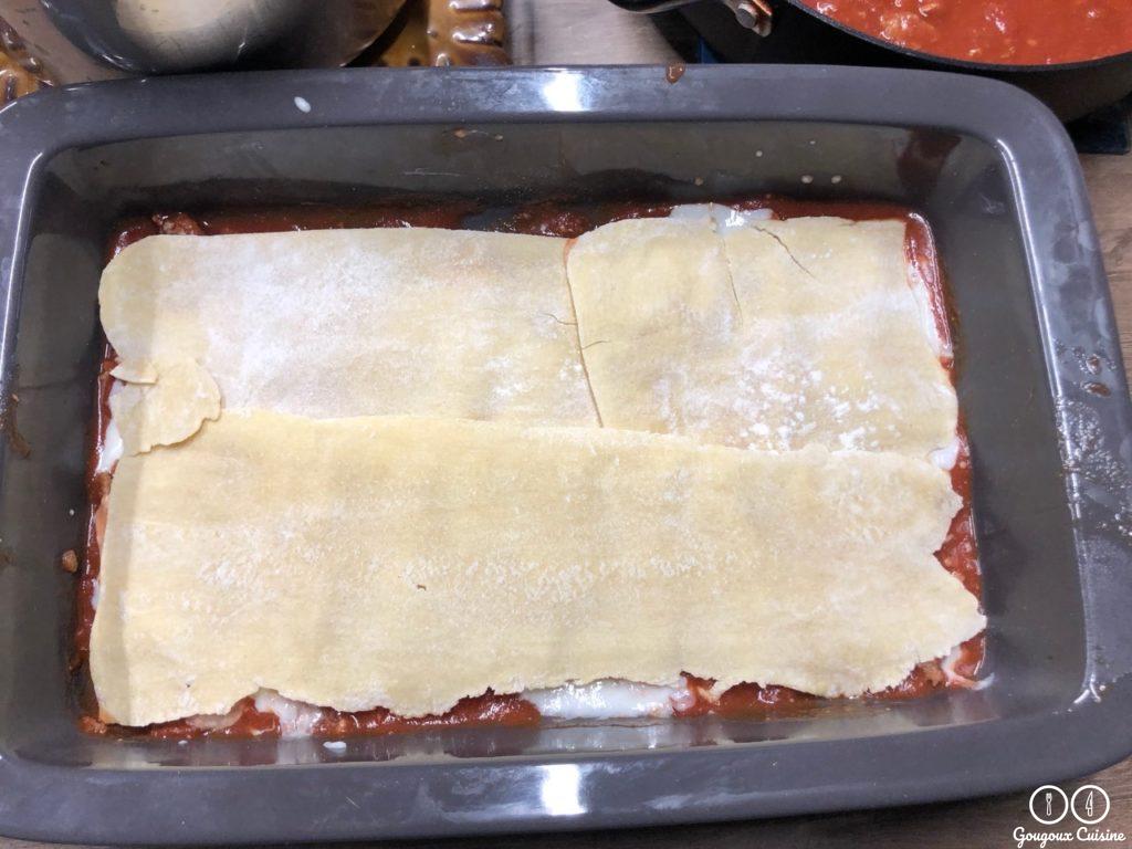 Ajouter les pâtes. Faire les étapes ci dessus pour tous les étages sauf le dernier qui n'aura pas de pâte.