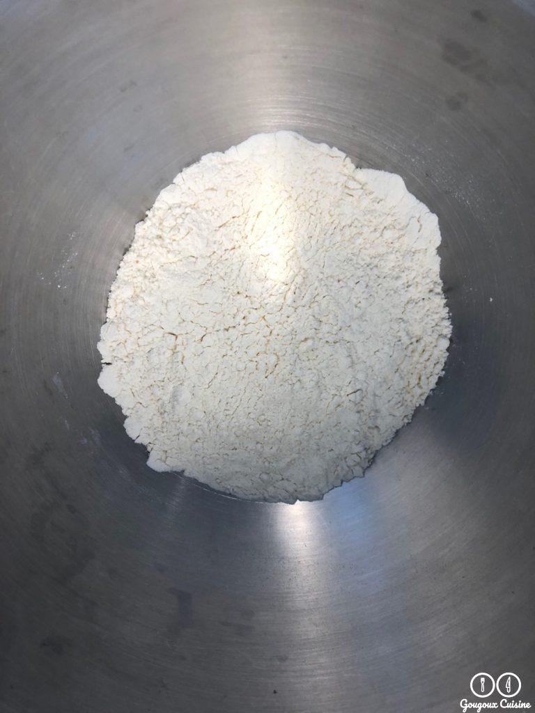 Mettre la farine et le sel dans le bol du robot pétrisseur.