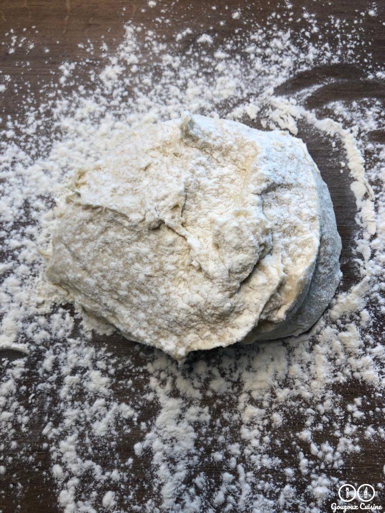 Ajouter la préparation au lait à la farine et pétrir 7 à 8 min.
