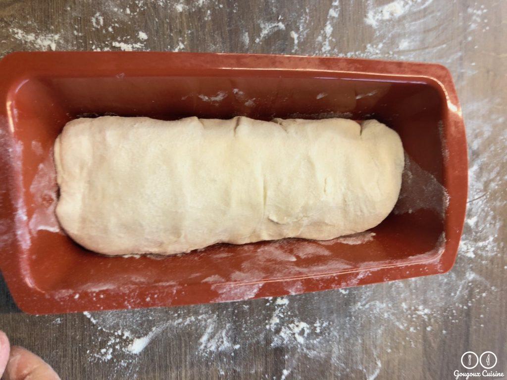 Le déposer dans un moule à cake et laisser lever 1h30 à 2h. La pâte doit arriver au sommet du moule environ.